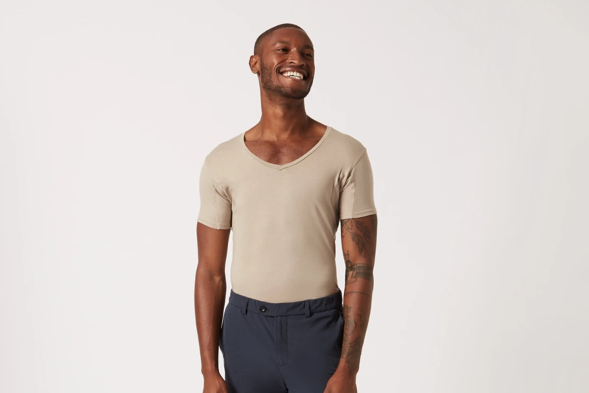 Designed to act as an invisible layer between you and your shirt. V-neck allows for multiple buttons opened! Pair Khaki with lighter shirts, and Black with darker shirts for the best hidden result.