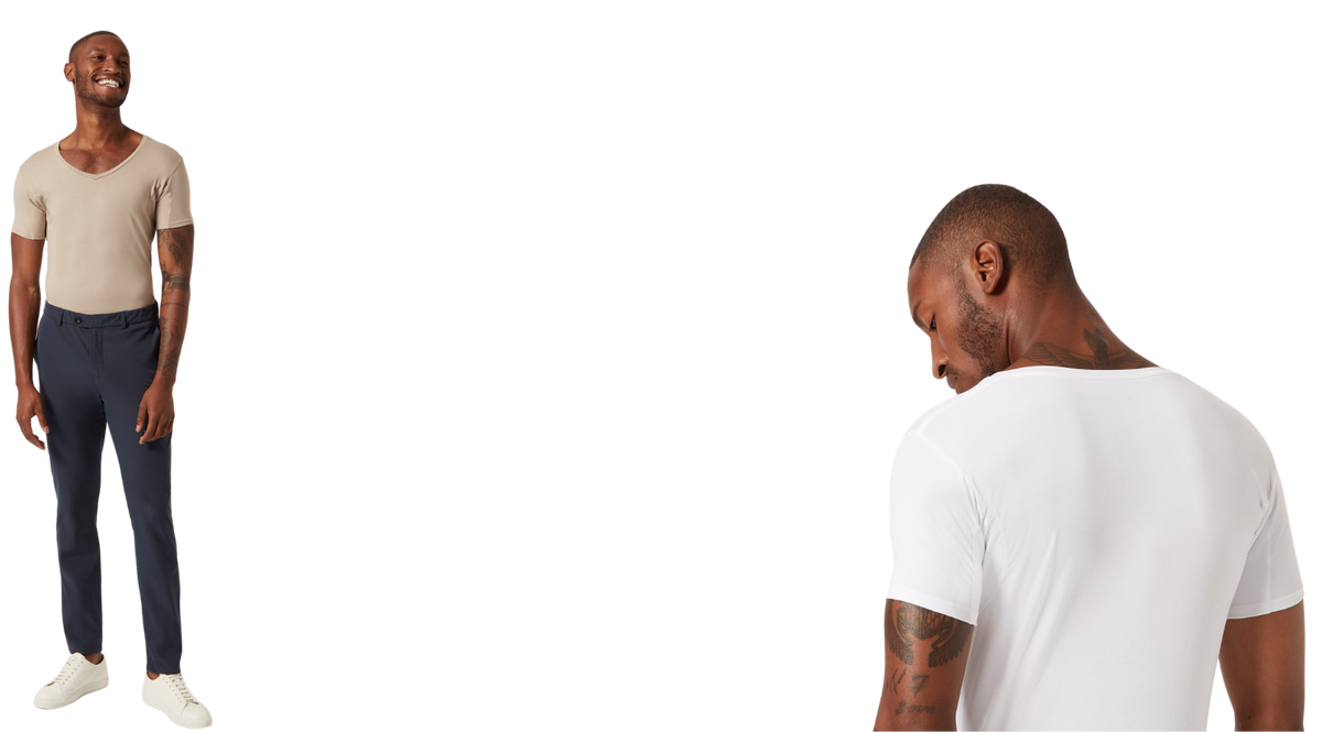The undershirt is invisible when wearing under a shirt thanks to the wide v-neck.