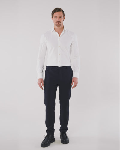 The new and improved Knitted shirt. Now also in true non-iron quality. Next to being ultra comfortable with 4-way stretch, repelling liquids and odour, this shirt is also less see-through and with reduced shrinkage. Made of eco-friendly materials, 43% recycled polyester - and the sealed Ascolite® button thread ensures you’ll never lose a button again.